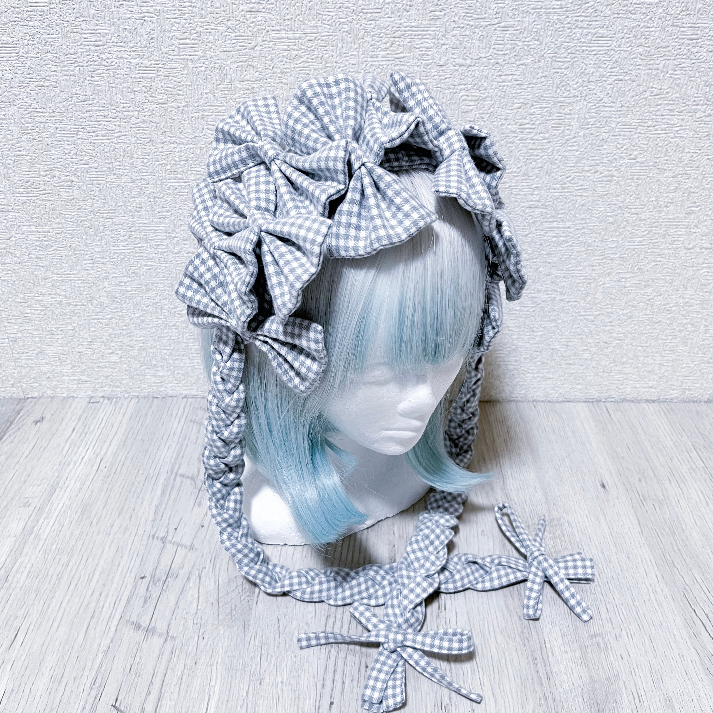 三つ編みリボンヘッドドレス<くすみギンガムチェック/light gray>