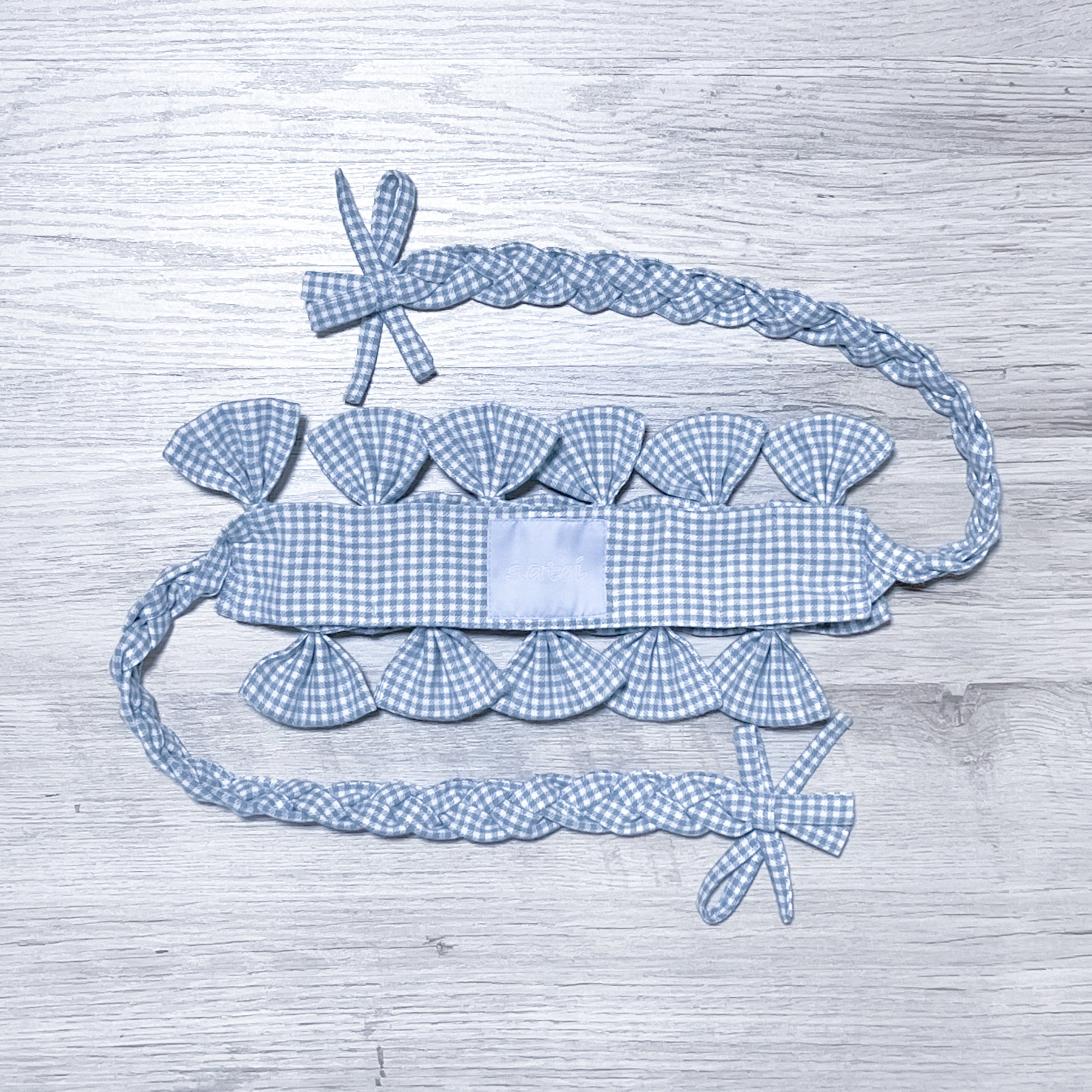 三つ編みリボンヘッドドレス<くすみギンガムチェック/light blue> | satoi