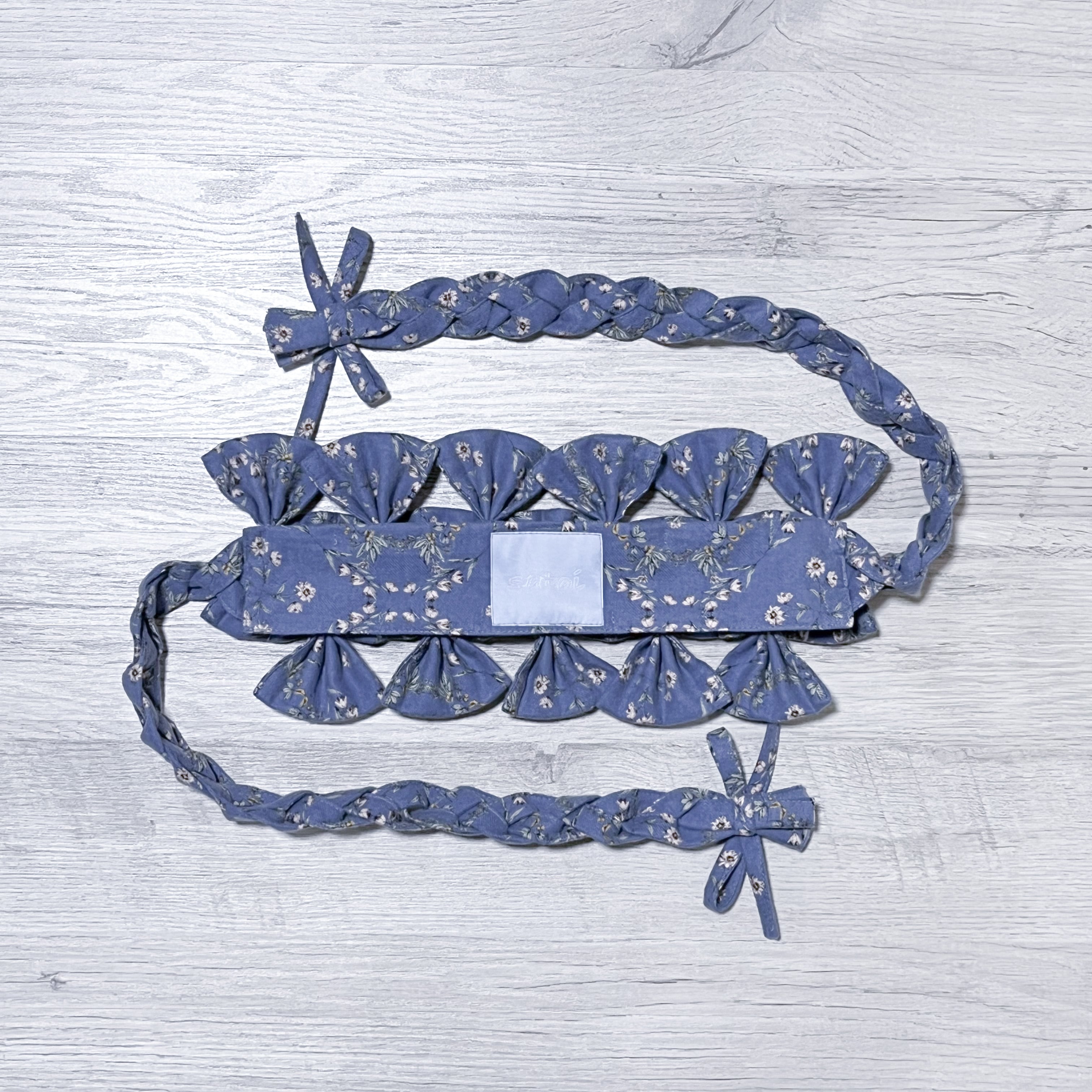 三つ編みリボンヘッドドレス<花/blue gray>
