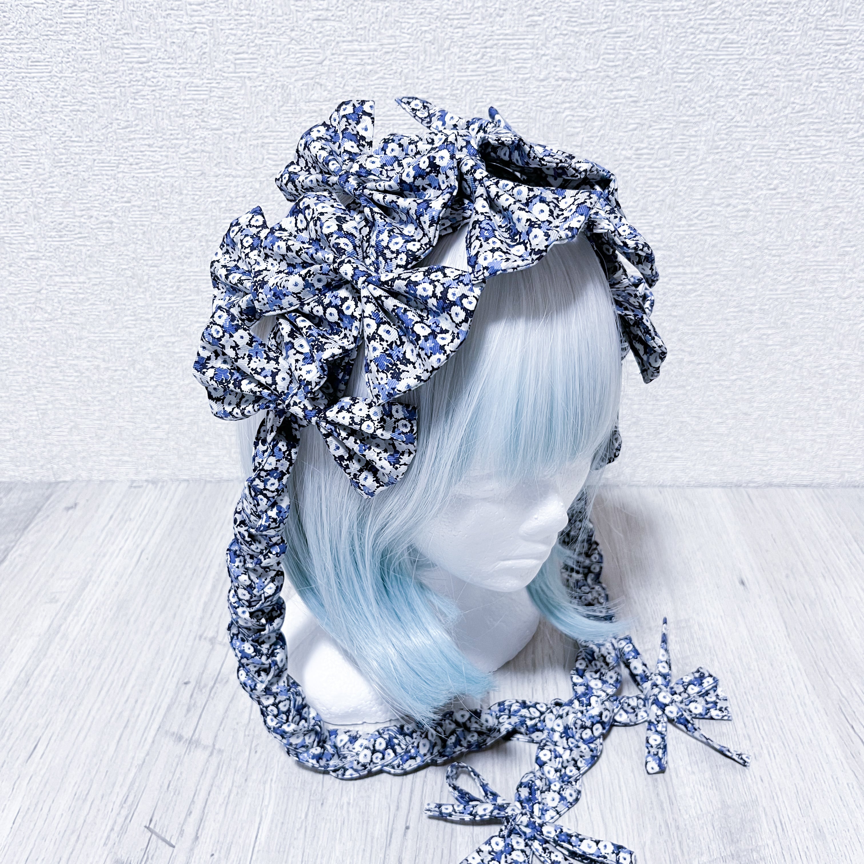 三つ編みリボンヘッドドレス<小花/blue>