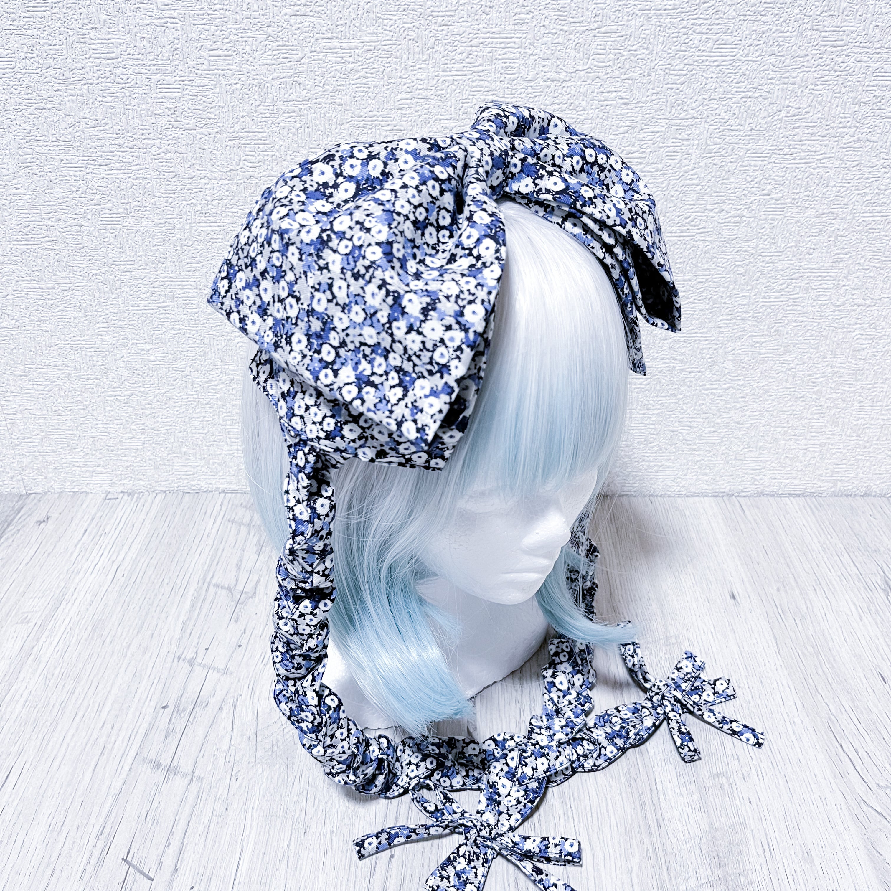 三つ編みビッグリボンヘッドドレス<小花/blue>