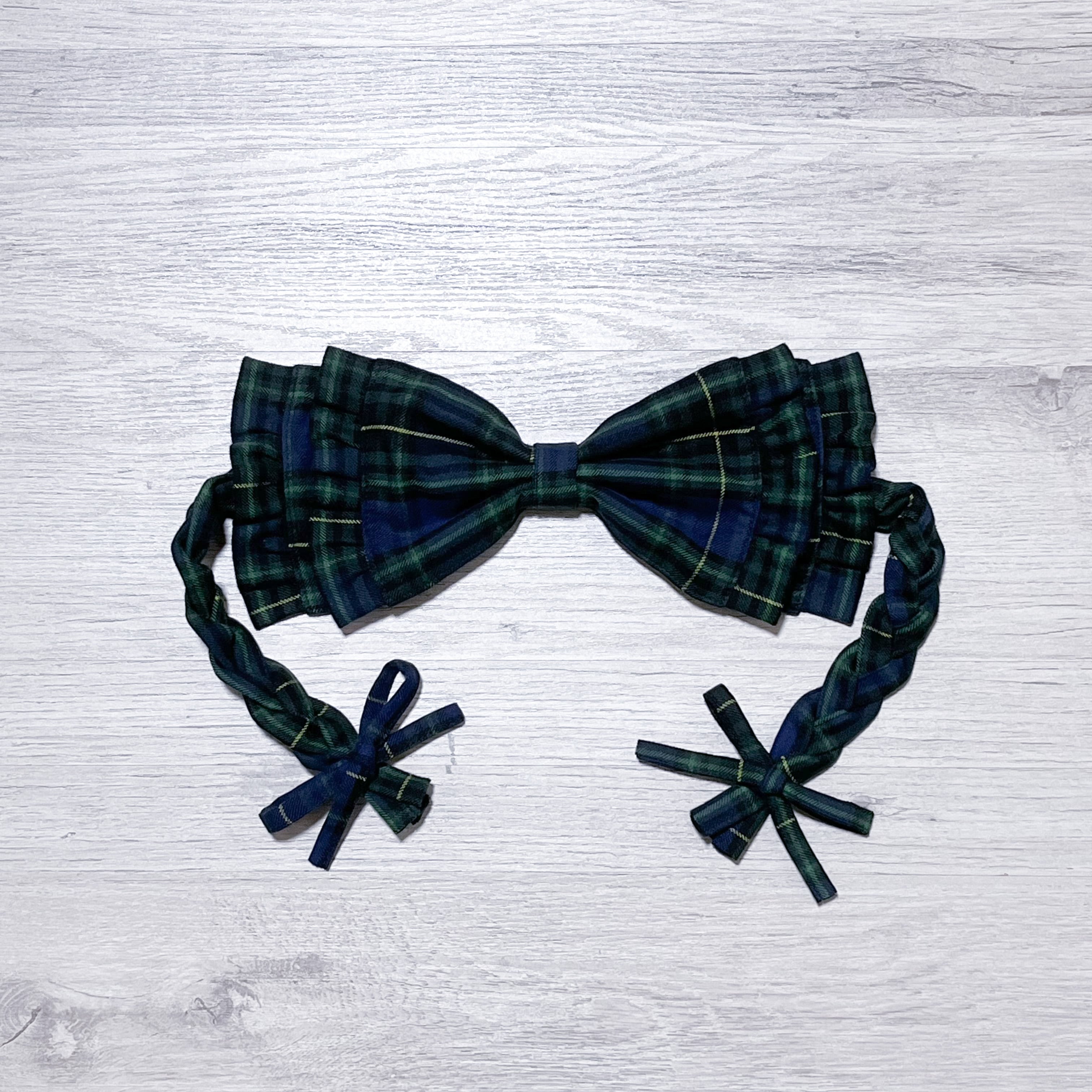 三つ編みフリルリボンヘッドドレス<チェック/navy × green>