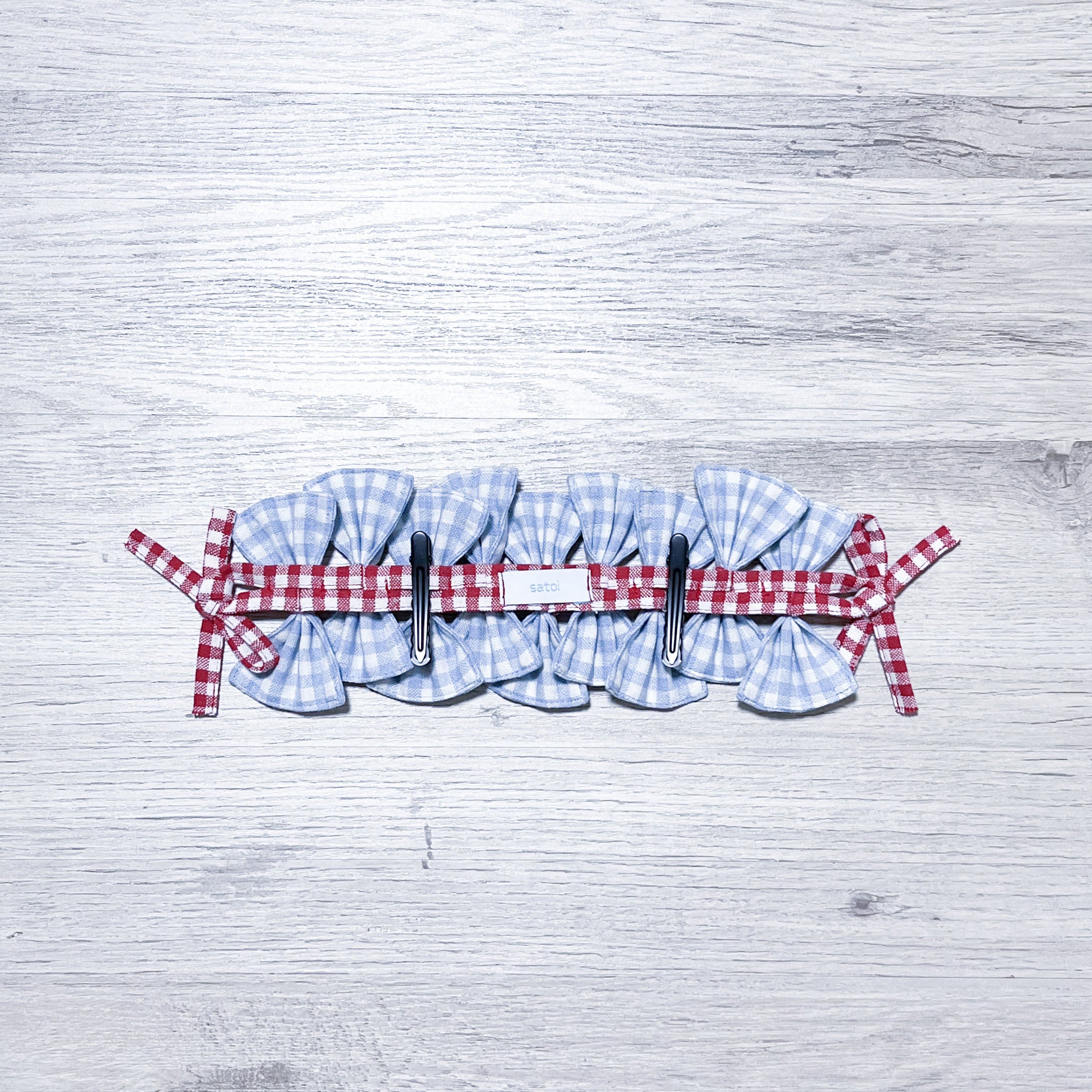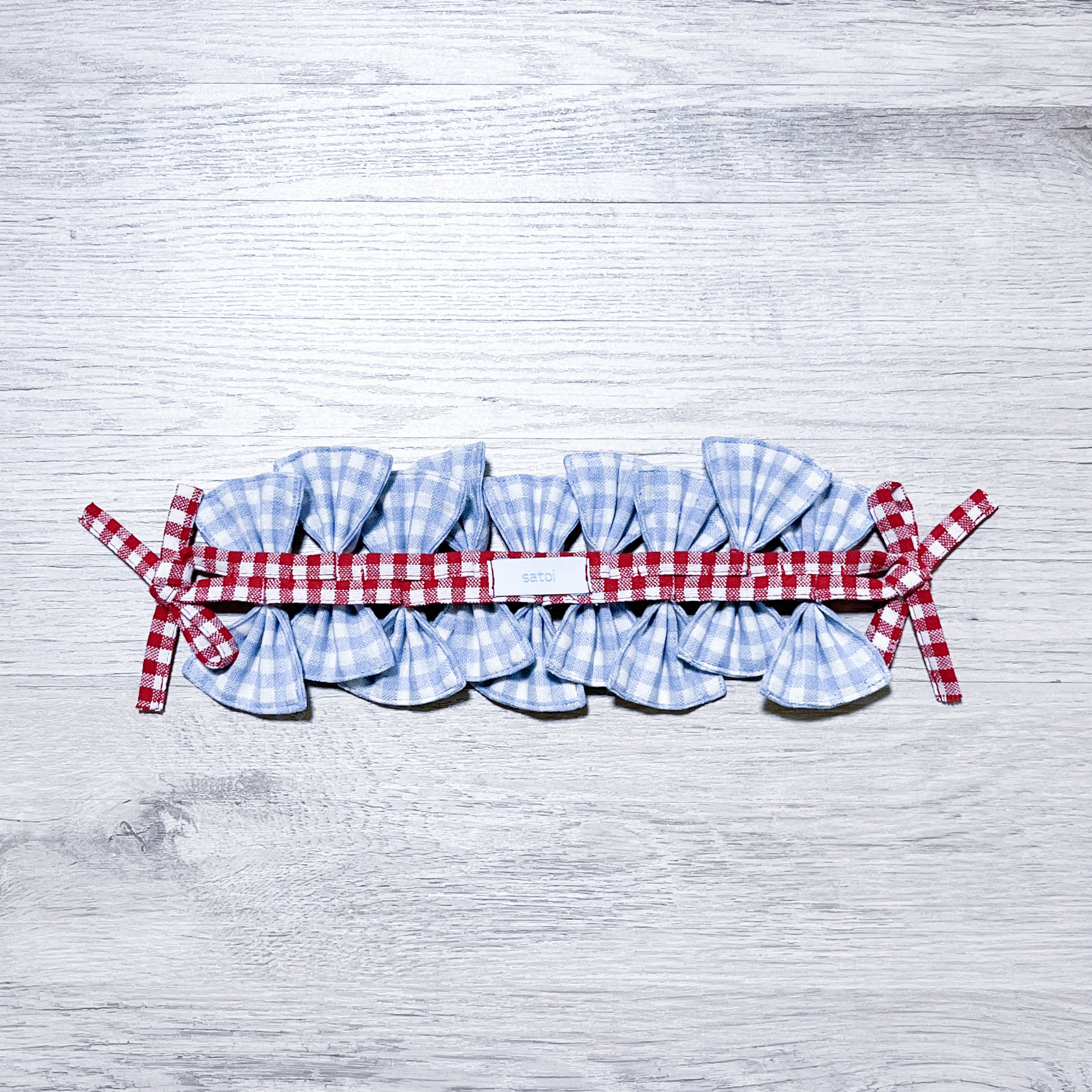 Ribbon Headpiece (Light Blue × Red / Gingham)
